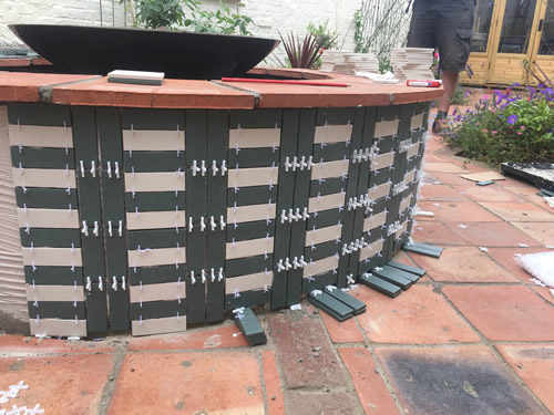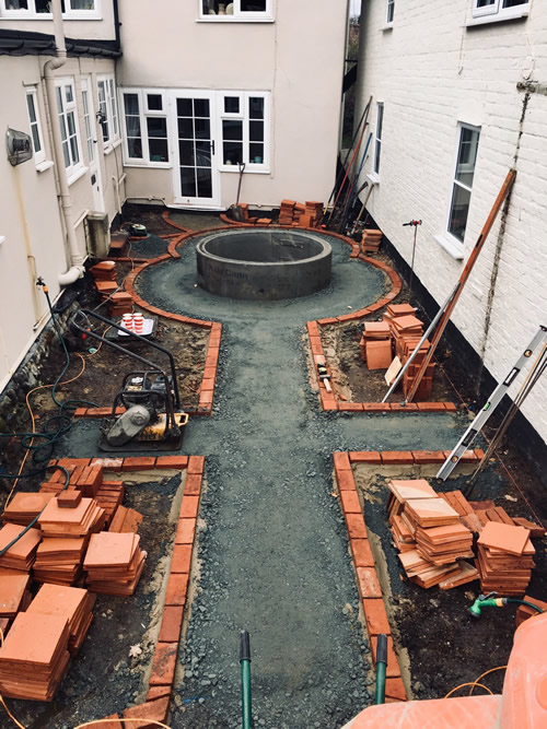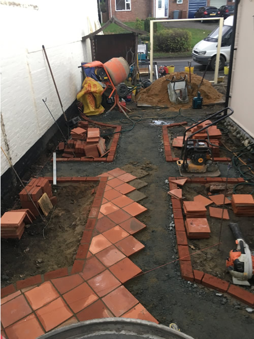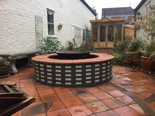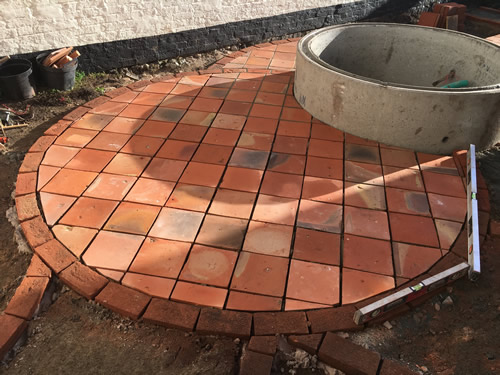 Creative use has been made of Garden Grade Suffolk Terracotta and Ely Red pamments (with a few odd colours too) combined with other tiles.