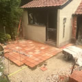 Colourful Garden Grade/thirds have been skilfully laid as a patio which connects the house and outbuilding.